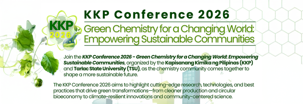 The Kapisanang Kimika ng Pilipinas (KKP), in collaboration with Tarlac State University (TSU), is proud to host the KKP Conference 2026. As our global communities face unprecedented environmental challenges, the role of chemistry has never been more pivotal. This conference is a call to action for chemists, researchers, students, and sustainability advocates to share innovative, socially responsive solutions.